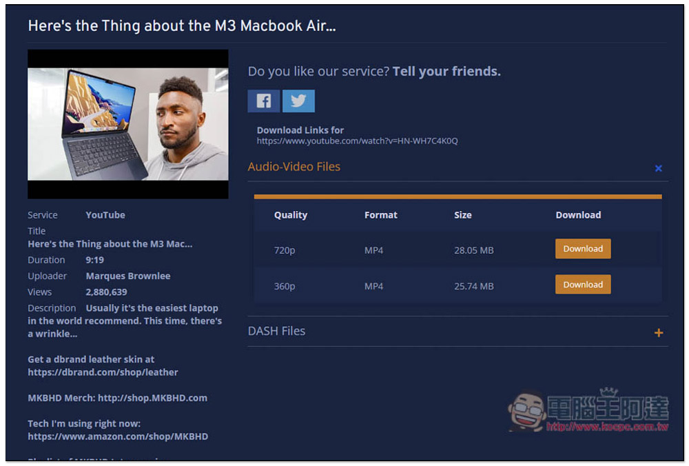 過去這工具最高可下載 4K 解析度,但最近我再次測試,似乎下降了,變成 1080p,而且很多都沒聲音,不確定是不是暫時變化,還是他們想推軟體(他們也有提供 Windows 軟體)。